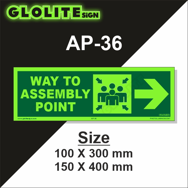 The Way to Assembly Point AP-36 signage is a vital safety element designed to provide clear and visible direction to the designated assembly point during emergency evacuations. Its intuitive design includes an easy-to-recognize symbol and directional arrow, helping individuals quickly find their way out of danger zones and toward safety. Whether in a corporate building, industrial facility, or public space, this signage ensures that during critical moments, people are not left searching for the right path. It serves as a dependable visual aid during fire drills, real emergencies, or power failures, guiding evacuees safely to a predetermined safe zone.
