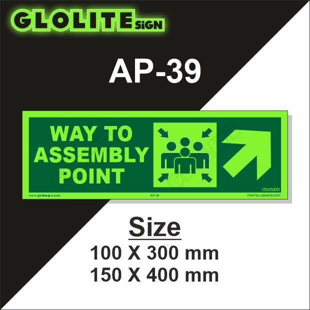 The Way to Assembly Point AP-39 is ideal for installation in areas where directional assistance is necessary to guide people safely to evacuation points. It is commonly used in factories, airports, shopping malls, hospitals, hotels, warehouses, educational institutions, and public transport hubs. These signs should be placed at regular intervals along escape routes, especially at hallway intersections, staircases, and exit doors to ensure consistent guidance. By enhancing the visibility of escape directions and improving emergency responsiveness, this signage helps organizations meet safety compliance requirements and demonstrates a strong commitment to occupant welfare.
